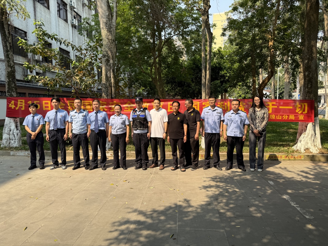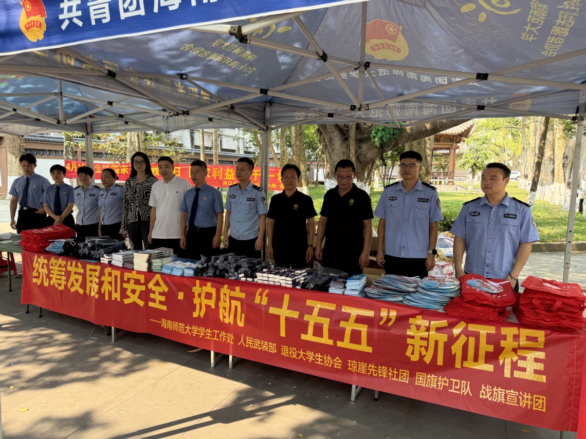 在4.15全民国家安全教育日到来之际,4月10日上午,学校保卫处联合海口市公安局琼山分局、学生处,在龙昆南校区开展国家安全教育主题宣传活动。保卫处、学生处领导及海口市公安局琼山分局警官共同参与,提前营造全民国家安全教育日氛围,以通俗易懂的形式普及安全知识。